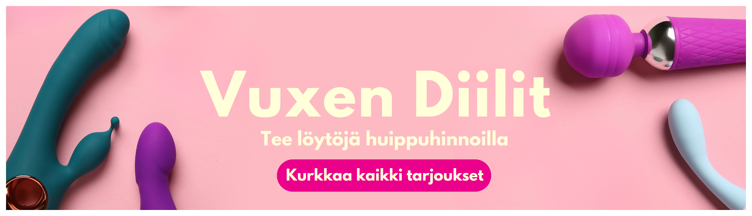 Vuxen on markkinoiden johtaja seksileluissa ja meiltä löytyykin Pohjoismaiden suurin valikoima aikuisten leluja miehille ja naisille. Valikoimastamme löydät suosituimmat seksilelut kuten imevä klitoriskiihotin ja dildo. Löydät myös seksileluja pariskunnille, Pohjoismaiden suurimman tarjonnan seksikkäitä alusvaatteita naisille ja miehille, kondomeita, hierontaöljyjä, liukuvoiteita ja paljon muuta. Meiltä löytyy varmasti täydellinen lelu jokaiselle, niin kokeneemmalle kuin myös aloittelijoille.