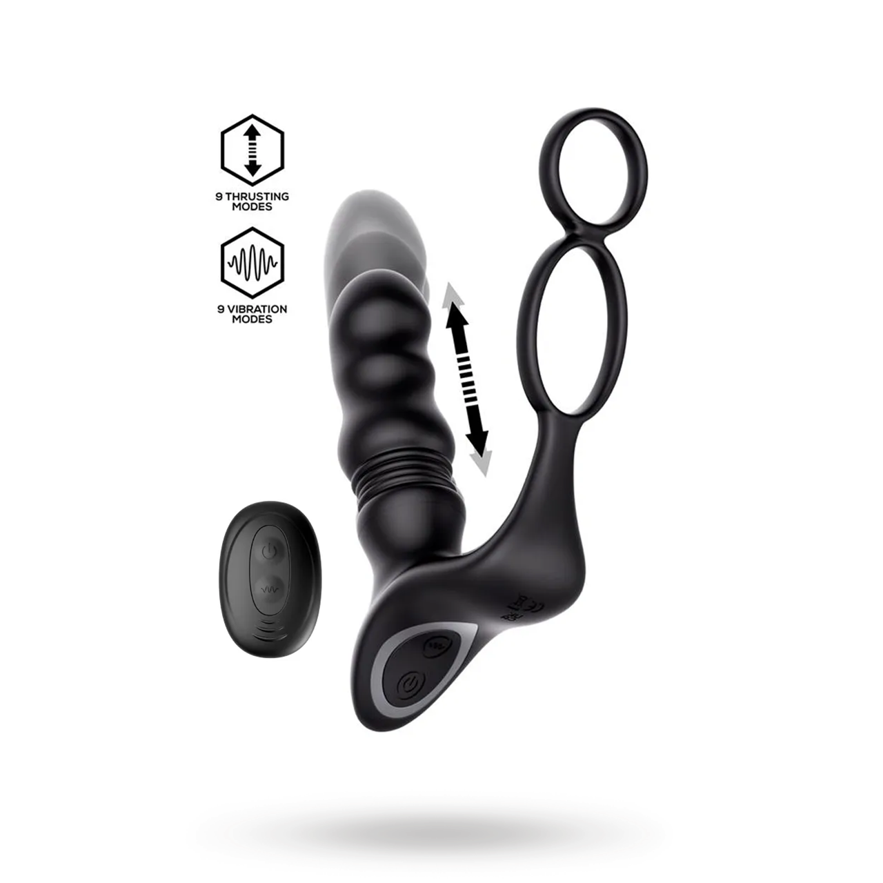 Ergonomisesti kaareva muoto seuraa kehon anatomiaa tarkempaa stimulointia varten, kun taas leveä pohja tarjoaa turvallisen ja mukavan käytön. Integroitu rengas tekee asennon ja liikkeen säätämisestä helppoa leikin aikana.