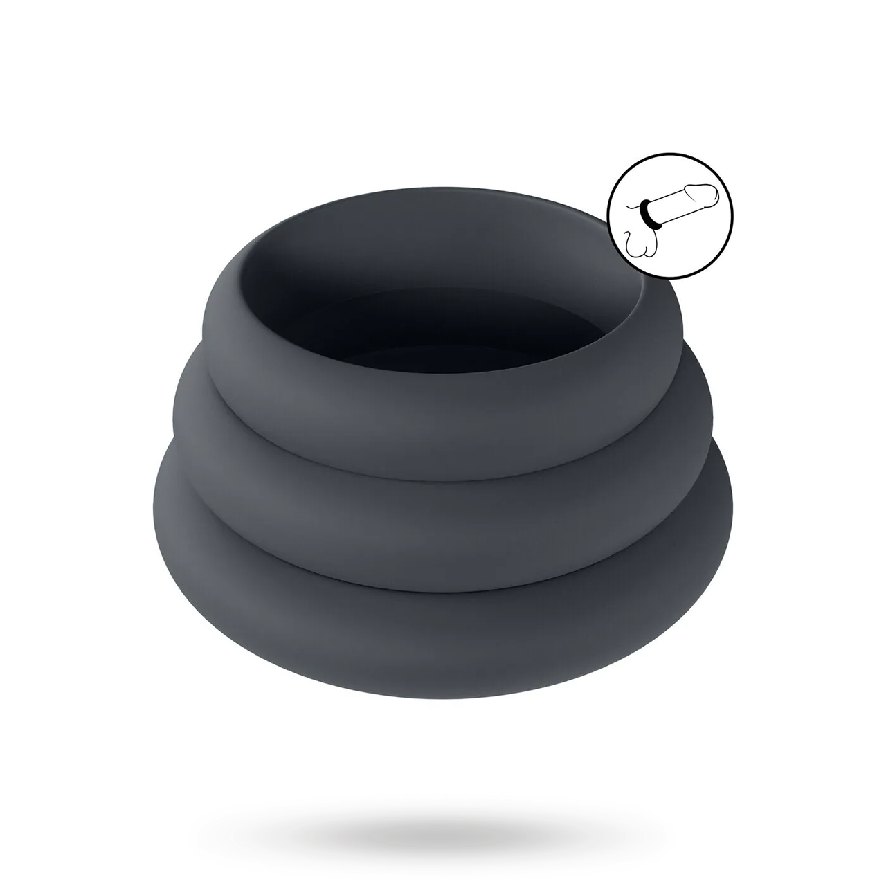 Wide O Silicone Cockring Set of 3 - S/M/L - Black