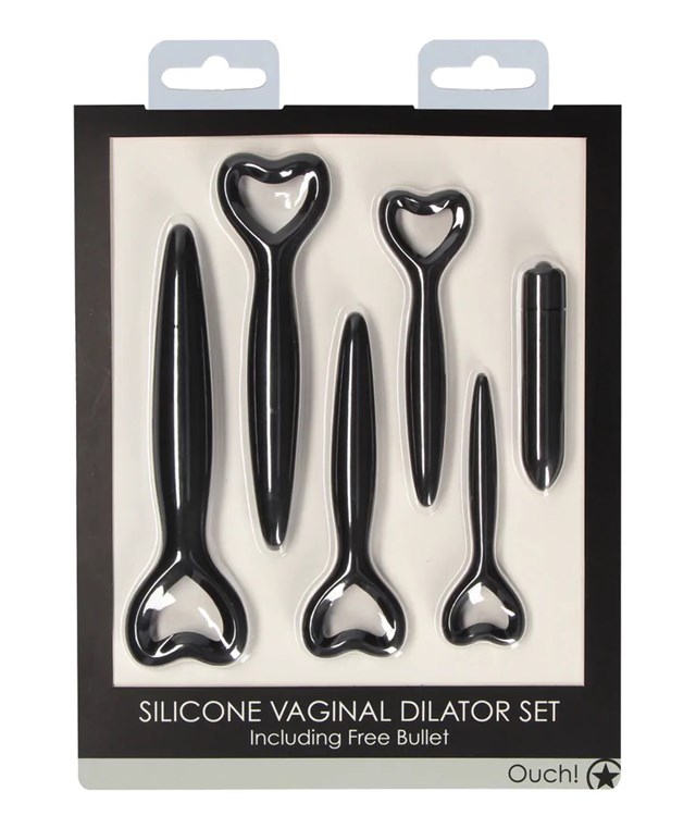 Ouch! Vaginal Dilator -setin tavoitteena on rentouttaa emättimen aluetta ja lievittää epämukavuutta. Kun pystyt asettamaan pienimmän dilaattorin mukavasti ja ilman epämukavuutta, olet valmis siirtymään seuraavaan kokoon. Setissä on mukana myös vibraattori lisänautintoa varten.